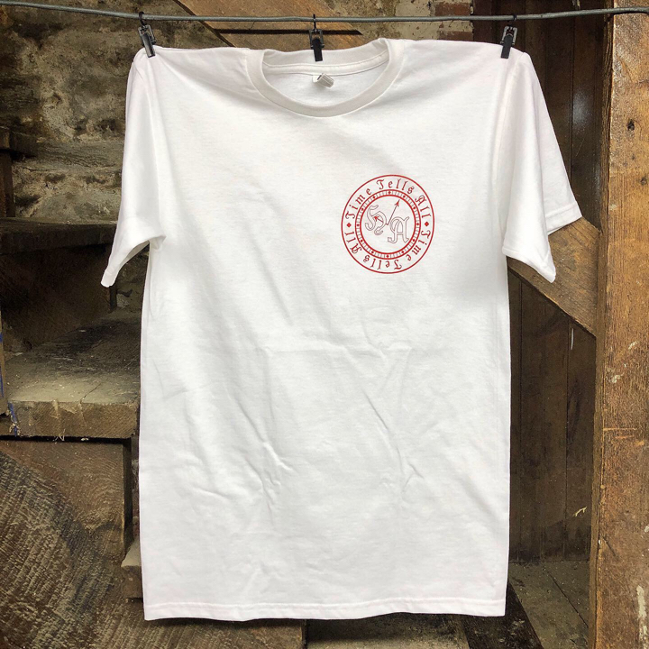This is a reprint of one of our very first designs. White shirt with red ink. Printed on Alstyle premium 100% cotton shirts.