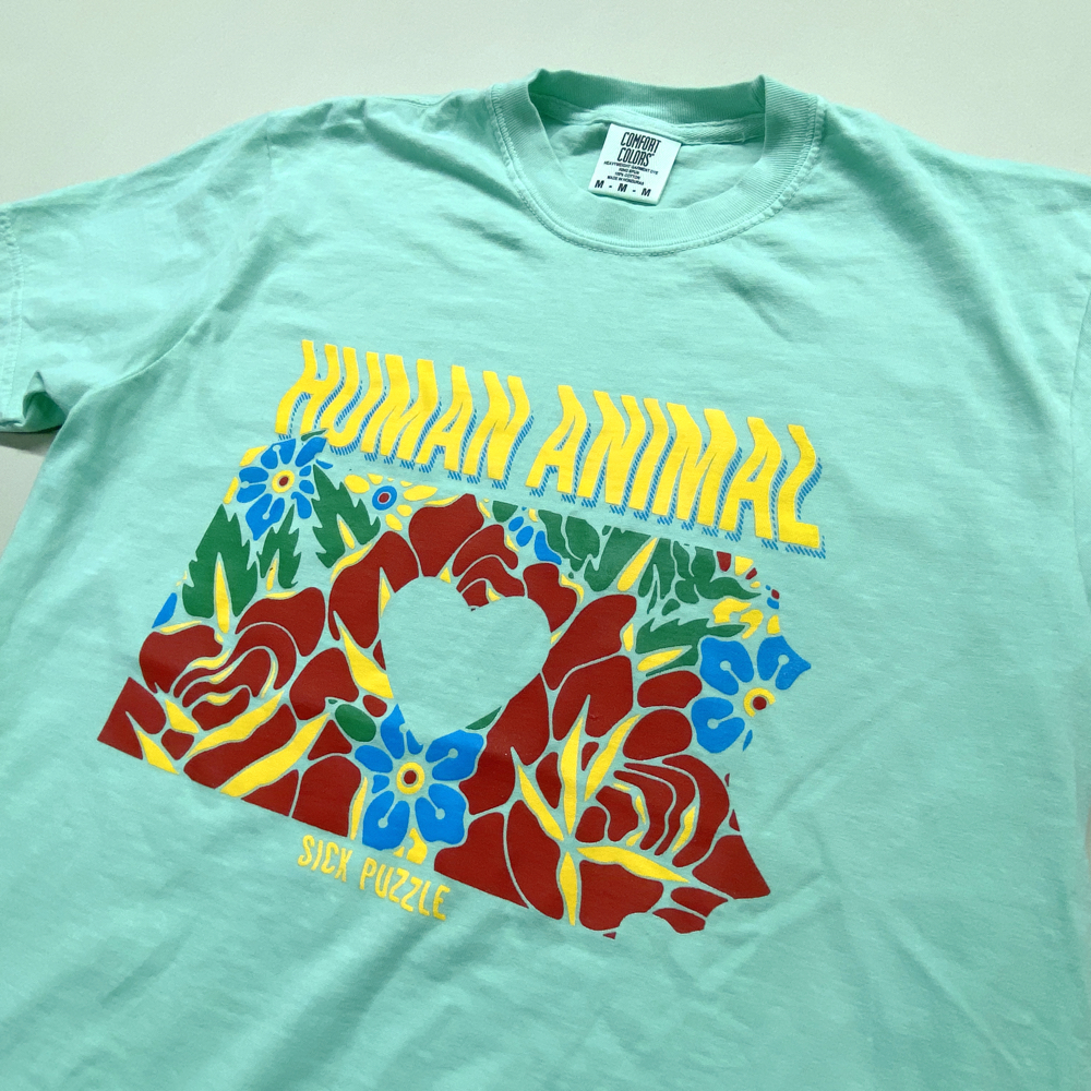 New shirts featuring our "Sick Puzzle" LP cover art as a 4 color front print. Available on "Island Reef" (Seaform green) Comfort Colors brand shirt. 100% cotton.